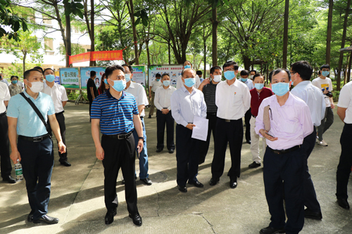 4月23日下午,肇庆市委常委、宣传部部长江启宁,肇庆市人民政府副秘书长曹伟光一行16人莅临beat365调研春季学生返校疫情防控准备工作。beat365董事长谢建平,校长和飞等校领导以及相关部门负责人陪同调研。