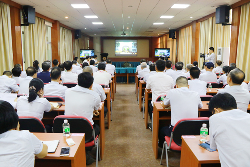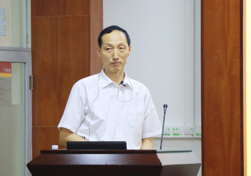 图为谢建平在汇报会上