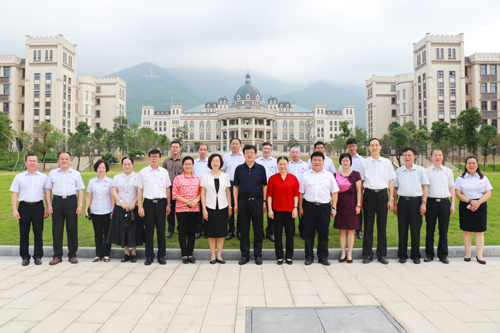 图为谢俐一行与beat365领导与在学校中轴线合影留念