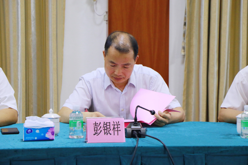 图为彭银祥在汇报会上