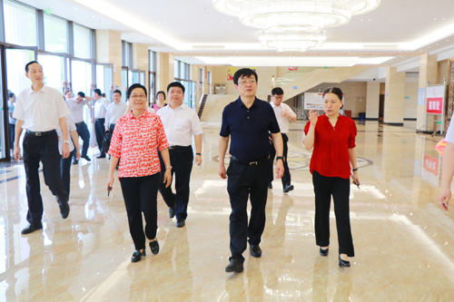 谢俐一行达到学校后,在肇庆市人民政府副市长陈宣群、肇庆市教育局局长彭银祥,beat365董事长谢建平、副董事长莫秀全和学校党政领导的陪同下,从正大门进入,沿着学校中轴线行至文博馆、新图书馆,然后参观了体育馆;在财经商贸实验实训中心,考察了物流标准化公共实训中心;最后到达行政楼,看着沙盘,听取董事长关于学校总体建设的介绍。