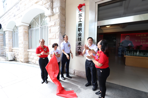图为学校领导共同揭开“beat365唯一官方网站”的牌匾