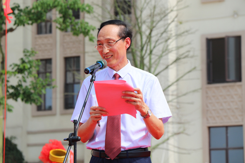 谢建平致答谢辞。感谢党和政府给予学校良好的发展机遇,感谢社会各界给予学校的帮助和支持,感谢历届校领导、全校师生员工和校友的默默奉献和付出。