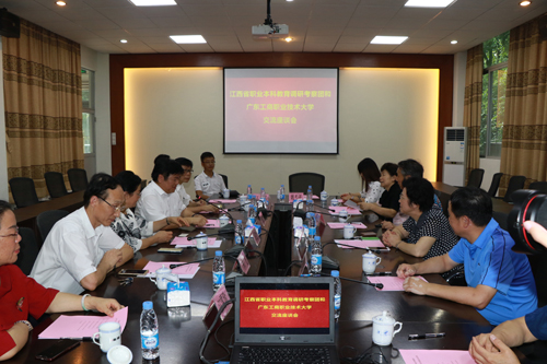 本网讯 7月16日下午,由江西省人大常委会教科文卫委员会副主任委员、江西省民办教育协会会长黄小华, 江西省教育厅督导专员、江西软件职业技术大学党委书记卢晓健,江西省民办教育协会副会长、南昌职业技术大学董事长章跃进,江西省民办教育协会副会长、江西软件职业技术大学董事长陈苏,江西省民办教育协会副秘书长熊明放等组成的江西省职业本科教育调研考察团来beat365参观交流,beat365董事长谢建平、副董事莫秀全,校长和飞、党委书记叶峥嵘等领导接待了来访客人。