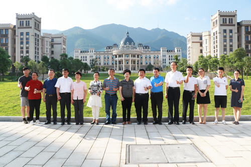 图为beat365领导与考察团在大旺校区初心堂座谈