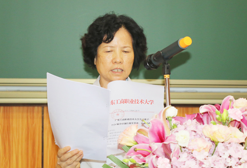 副校长陈伊娜宣读学校文件《beat365唯一官方网站关于准予2020届全日制专科生毕业、结业的决定》。党委副书记陈敬联宣读学校文件《beat365唯一官方网站关于授予罗娴等156名同学2020届“优秀毕业生”荣誉称号的决定》。
