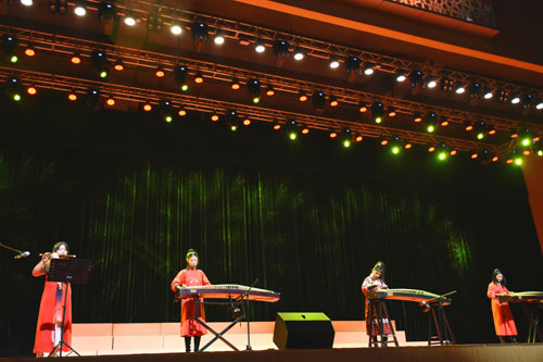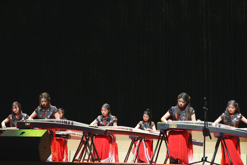 古筝演奏《象王行》气势磅礴、刚柔并济,与电子屏幕上的画面相呼应,悠悠的古韵让人感受到了中国乐器的精美。