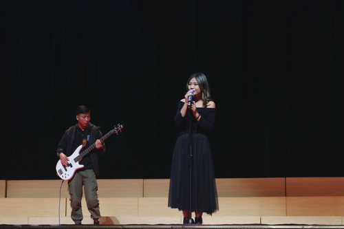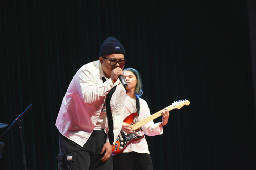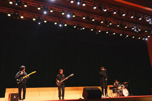 电声乐队扫动吉他弦,敲响青春的鼓,激情澎湃充满节奏感的带给我们一首《男孩别哭》,顿时引燃全场的氛围。随后一首温文尔雅的《小情歌》,霎时将现场观众带入了罗曼蒂克的爱情世界,让人遐想连篇。歌曲《王妃》又再次点燃了在场莘莘学子们心中的激情。