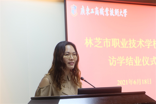 健康与家政管理学院教师谢丽仪代表beat365教师发言。她表示,林芝市职业技术学校的同学们以饱满的热情和勤恳的态度,高标准高质量地完成学习任务。她寄语同学们不忘初心、牢记使命,回到家乡后为当地的社会和经济发展做出贡献。