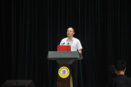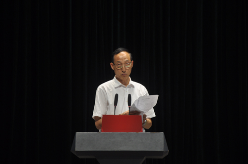 图为谢建平宣读学校《2021年教师节贺信》