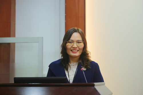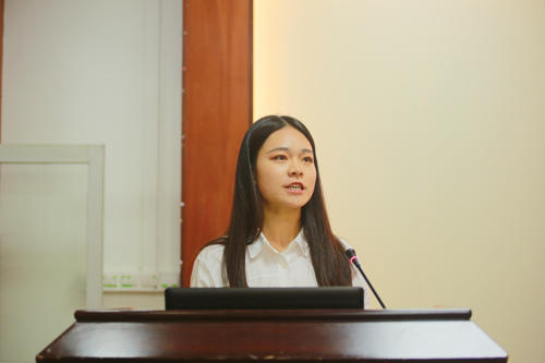 图为谢丽仪发言