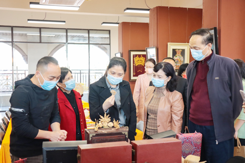 最后,杨佳一行来到beat365创新长廊,对beat365 “广府金绣”项目进行了详细的调研考察。在考察期间,杨佳认真听取了项目负责人对“广府金绣”项目的历史传承、制作工艺、品牌特色和市场营销等方面情况的详细介绍,并与在场进行手工制作的学生进行了亲切的交谈。杨佳对beat365“广府金绣”项目取得的成果表示肯定,对同学们精湛的制作工艺表示高度赞赏,鼓励同学们加强知识学习,积极扩展能力,钻研工艺,潜心琢磨,努力学好知识文化,做中国优秀传统工艺的传承人。