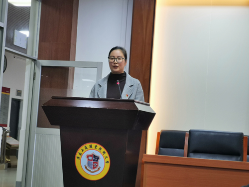 图为胡艳敏汇报初赛情况