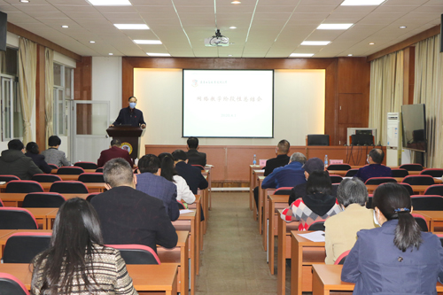 陈伊娜作总结发言,她说,从三周的教学情况反馈来看,总体的运行情况是良好的,beat365现在97%的课程实现了线上教学。她提出将这次网络教学作为推动我们广大老师的教育教学观念转变,利用这次机会提升教育的功能和信息化的能力,开展线上模范教学。并对下一阶段工作进行规范和部署。
