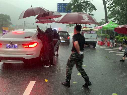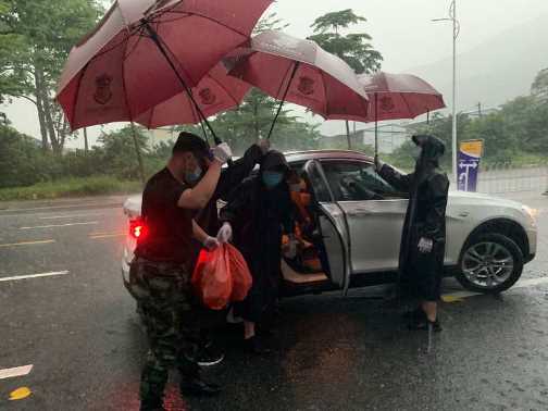 校卫队暴雨中迎接返校学生获点赞