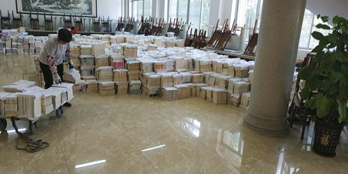 图为工作人员在打包图书2