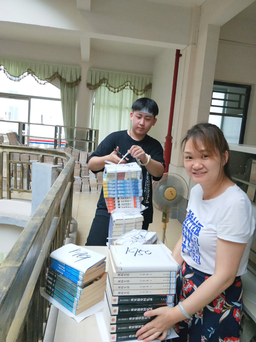 图为工作人员在打包图书1
