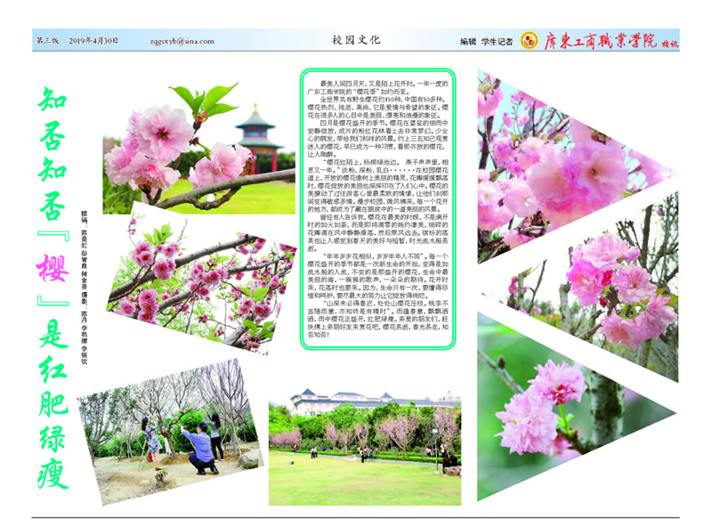 本网讯 近日,由广东高校校报研究会主办的“2019年度广东高校校报好新闻评选”结果揭晓,beat365共有三项作品获奖,其中,学子杨璇杏设计的“beat365唯一官方网站校讯2019年第七期第三版”获得版面类二等奖;韩治国老师撰写的《beat365唯一官方网站获批》 获得消息类三等奖;学子陈曼虹、彭智良、何金善撰写的《知否知否,“樱”是绿肥红瘦》获得标题类三等奖。(供稿:宣传部)
