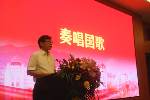 图为奏唱国歌现场