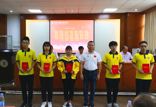 图为吴桂新为优秀学生党务助理获奖代表颁奖