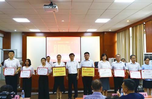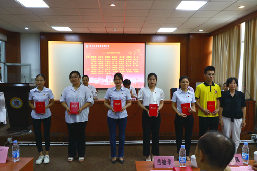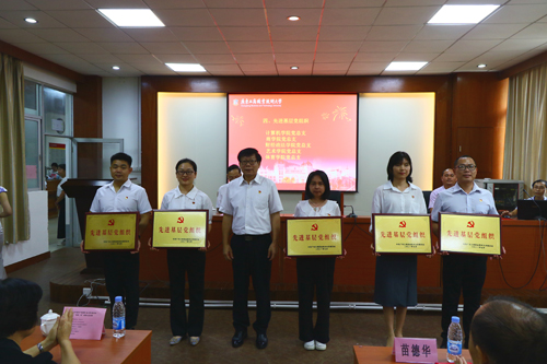 党委书记叶峥嵘为先进基层党组织、市级优秀个人和集体获奖代表颁奖。党委委员、副校长陈伊娜为优秀共产党员获奖代表颁奖。党委副书记卢景值为优秀党务工作者获奖代表颁奖。党委委员、校长助理吴桂新为优秀学生党务助理获奖代表颁奖。