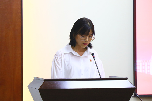 商学院党总支副书记胡艳敏代表全体受表彰的党员发言。她表示,全体受表彰的党员同志将在今后的工作中做到树形象、做表率,主动担当、大胆作为、立德树人,做好学校政治安全、思政等工作,积极响应党中央的号召,牢记初心使命、坚定理想信念,主动担当,积极作为,落实从严治党责任,紧紧围绕学校的各项工作,以更优异的成绩,向党的100年华诞献礼。