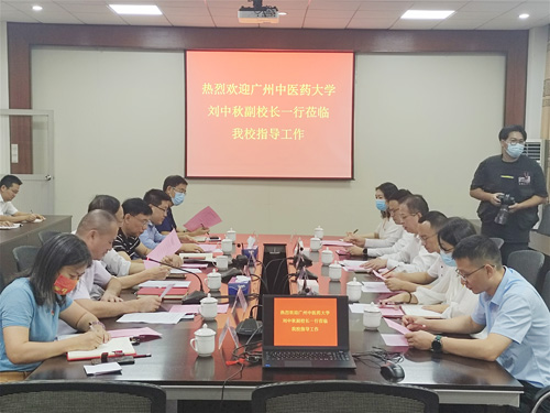 本网讯 为贯彻落实中共广东省委教育工委关于开展新一轮公办高校与民办高校党建“组团式”帮扶工作要求,10月24日上午,广州中医药大学副校长刘中秋带领帮扶小组一行6人来校参观指导工作,并就落实对口帮扶工作与beat365领导进行了座谈交流。beat365校长和飞、党委书记丁勇、党委副书记卢景值、党委组织部部长陈泳霞、教务处处长梁虹、校长办公室主任尚越等参加了座谈。