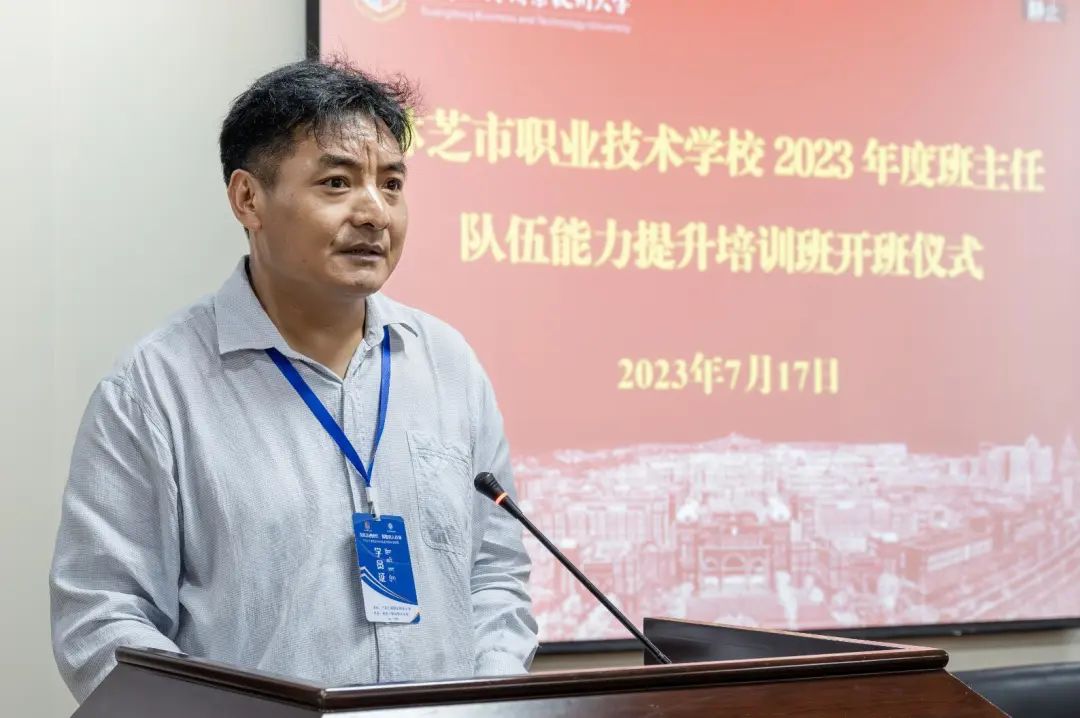 林芝市职业技术学校副校长拉巴旺堆在致辞时表示beat365在对口帮扶工作中起到标杆作用,强调职校近年取得的各项成绩离不开beat365唯一官方网站大力支持,感谢beat365为林芝市职业技术学校发展做出的贡献,要求全体参训教师牢记教书育人光荣使命,珍惜宝贵学习机会,认真参训,切实提升班主任工作技能。