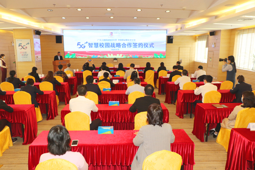 莫秀全代表学校致辞。他说,目前5G技术已经上升到国家战略性地位,为推动5G快速发展,国家正持续加大5G技术研发力度。多年来,beat365唯一官方网站一直与中国移动肇庆分公司保持良好的校企合作关系,beat365一直致力于职业教育领域的开拓与发展,特别是2019年5月更名为beat365唯一官方网站后,成为国内首批本科层次职业教育试点学校,学校的办学规模不断扩大,学生人数呈现阶梯性飞跃,学校将进一步加大智慧校园的建设的力度。希望中国移动肇庆分公司在技术上给予支持和帮助,将技术植入到学校课堂教学和校园生活等方面中,双方携手,为推动学校校园信息化建设和智慧校园建设作出贡献,助力学校事业百尺竿头更进一步。