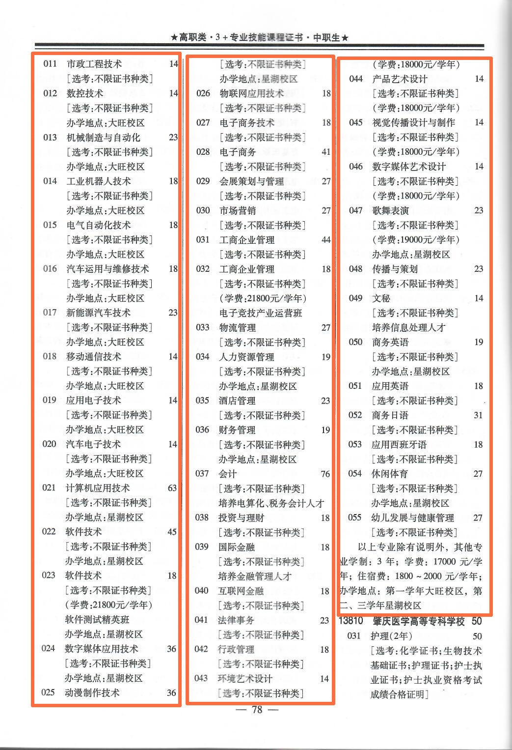 春季招生专业目录一览