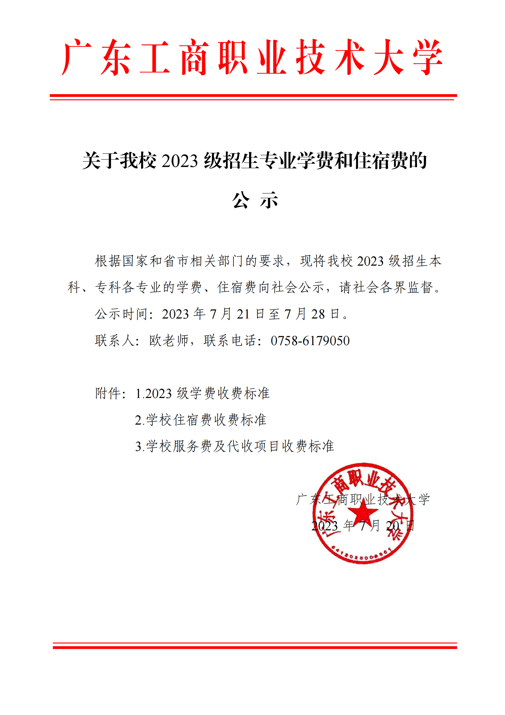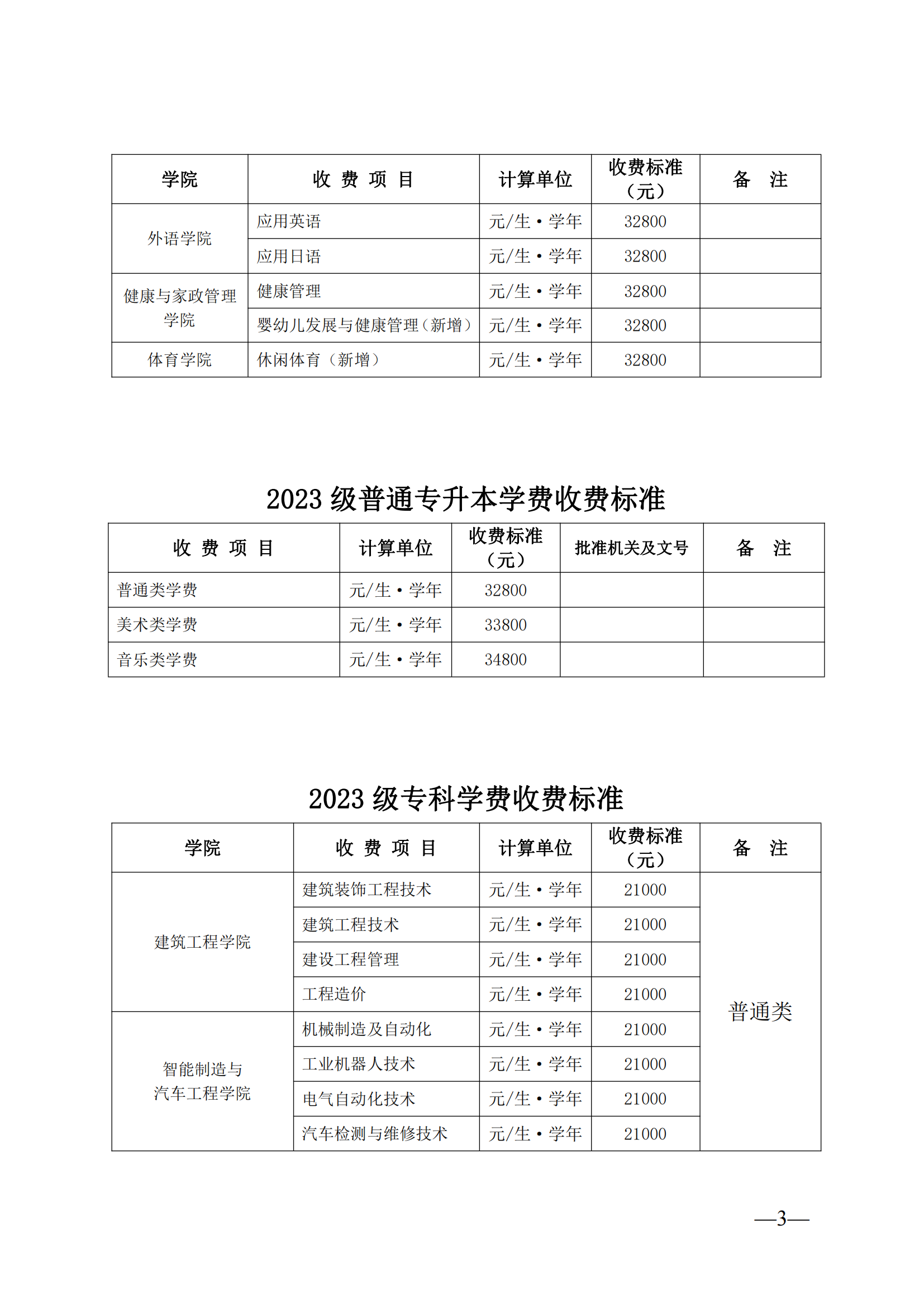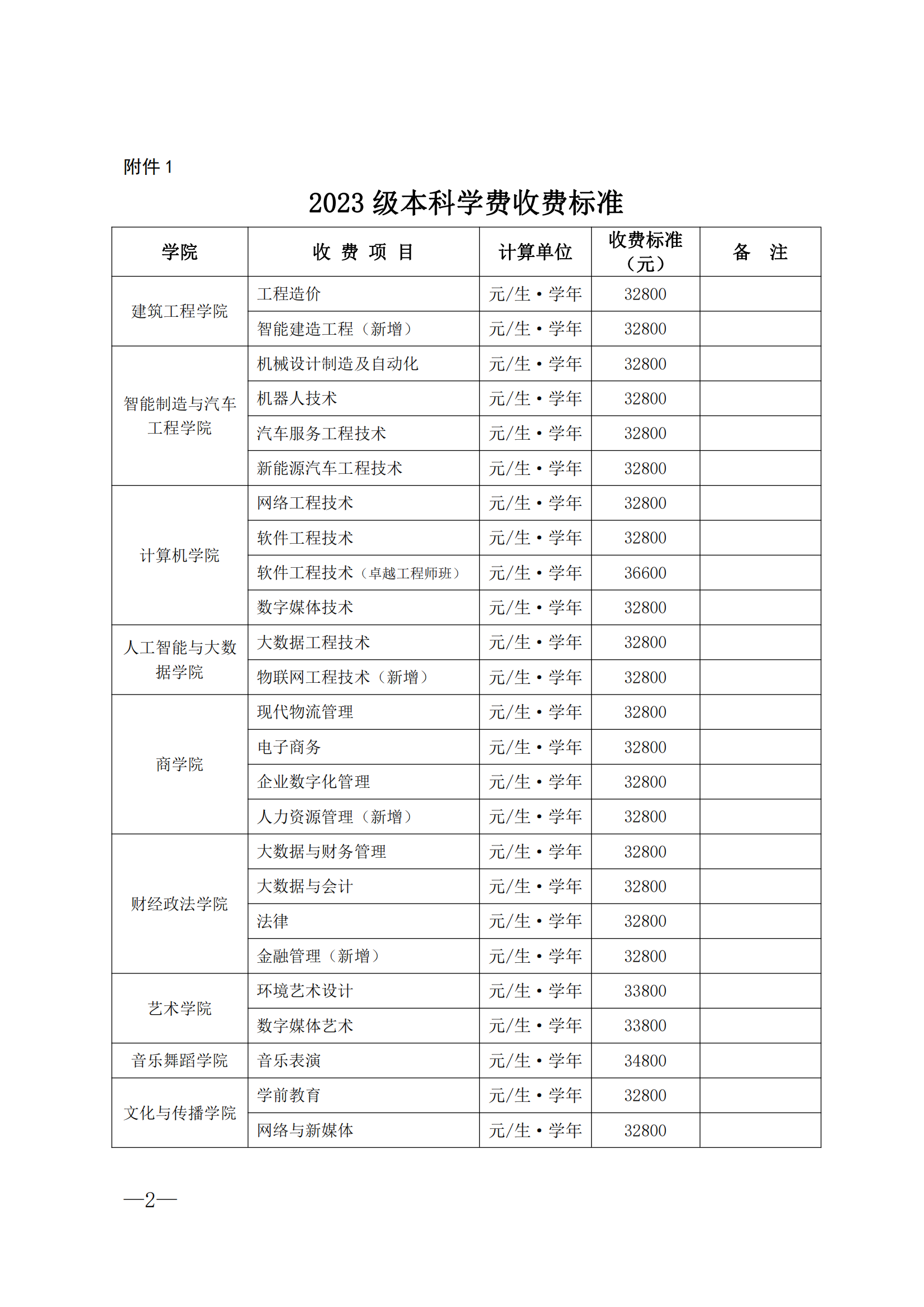 beat365唯一官方网站 2023 级招生专业学费和住宿费的公示