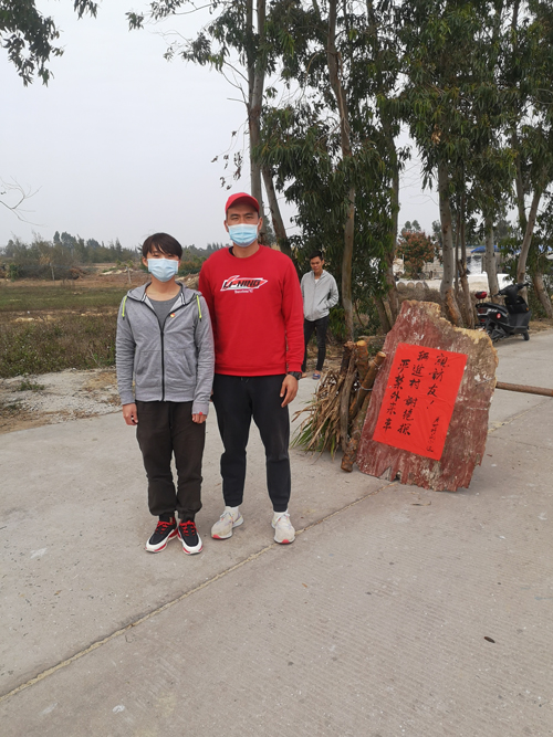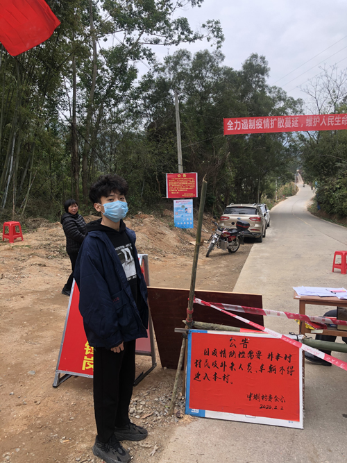 2月9日至15日,廖仁泽在广东省茂名市信宜市中垌村进行志愿服务工作,对往来人员进行人员信息排查和有无接触史的检查工作。