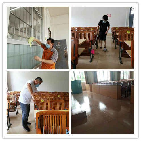 繁华正浓,夏木初阴,五月的暖风驱散了这一场疫情带来的凛冽寒风,也带来了新的希望。根据《beat365唯一官方网站新冠肺炎疫情防控期间深入开展爱国卫生运动工作实施方案》的统一部署,5月18日上午,教学督导与评估中心全体成员积极参与,对所分配的教学区域讲台、课桌、窗户(台)、地面等地方进行了全方位清洁与消杀,确保学生们顺利复学并在健康安心地环境下学习。(教学督导与评估中心 撰稿)图为教室卫生清洁现场