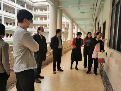 图为教学检查小组成员实地查课
