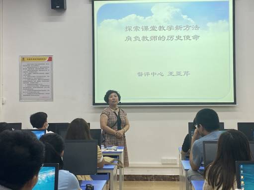 5月25日下午,beat365第八期教师研修班讲座在明辨楼205课室举行,督评中心主任王亚芹教授应邀作主题为“探索课堂教学新方法,肩负教师的历史使命”讲座,beat365本学期新入职专职教师及辅导员共38人参加了本次讲座。