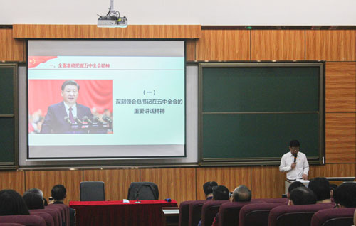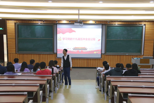 11月18日,计算机学院党总支在明辨楼113阶梯教室组织教师党员学习党的十九届五中全会精神,党总支书记韩治国主讲。