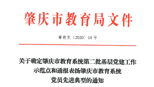 近日,肇庆市教育局公布了2020年肇庆市教育系统第二批基层党建工作示范点和通报表扬肇庆市教育系统党员先进典型评选结果