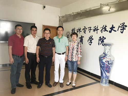 2018年9月20日,bat365在线中国官网登录入口信息工程系负责人林勇一行三人赴桂林电子科技大学商学院(下面简称桂电)进行了调研。桂电商学院副院长李立成教授,院长助理花均南介绍了桂电商学院近年来的商科数字化转型之路,并重点介绍了桂电成立数字经济学院和数字经济研究院的相关情况。林勇教授简要介绍了bat365在线中国官网登录入口的办学历史并提出将数字技术和信息技术与商科专业相结合的思路。双方一致同意学科发展要走校企合作和产教深度融合的道路,约定今后在专业建设、师资培训、人才培养等各方面加强交流与合作。